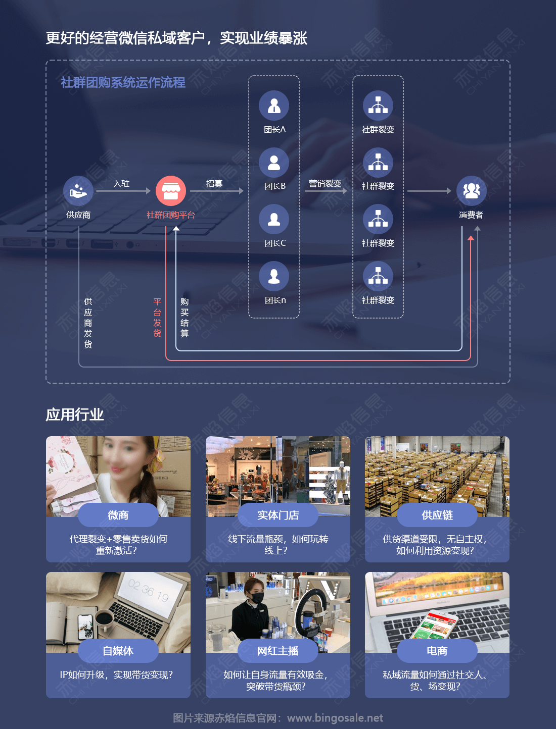 以社區為單位,由寶媽或店主成為團長,在線上借助微信群、小程序等組織社區居民拼團、線下完成交付,當日線上下單、次日社區內自提,由平臺提供采購、物流倉儲及售后支持。按銷售額,團長抽取一定比例傭金。
