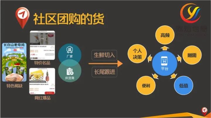 這一階段推動社區團購市場繼續增長的主要動力是生產商的提效降本。由于社區團購業務是全程在線化、數字化的,最終會實現全面的網絡化。廠家只要接入這個網絡,就可以根據網絡里的數據安排生產和配送,無效生產和無效物流將減少。越來越多的廠家到這個網絡里開展業務,從而推動社區團購市場的第三波增長。第三波增長的一個直觀體現是社區團購場景下可售SKU數量的持續、快速的增長。與之同時發生的是去經銷商化。經銷商的價值是平衡廠家生產速度和零售商銷售速度的差異,隨著快消品流通的全面數字化,這個差異會越來越小,所以經銷商的生存空間就會被擠壓。從整體看,社區團購是互聯網技術在快消品行業的深度應用。從消費端開始,逐步傳導到流通端,再傳導到生產端,最終把整個過程數字化,并用數字化優化、重構了快消品的產銷配過程,形成了一個產業互聯網的分支—快消品互聯網。