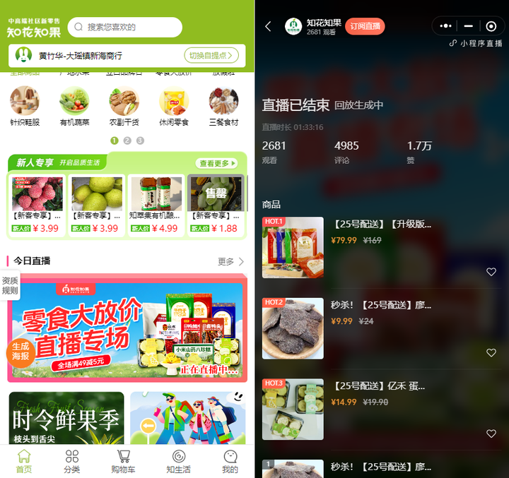 2025 年 2 月,知花知果與寧夏沙坡頭區東園鎮達成合作,采用 “直播帶貨 + 社區團購” 的雙輪驅動模式,致力于將當地的硒砂瓜、旱蘋果等農產品打造成網紅品牌。